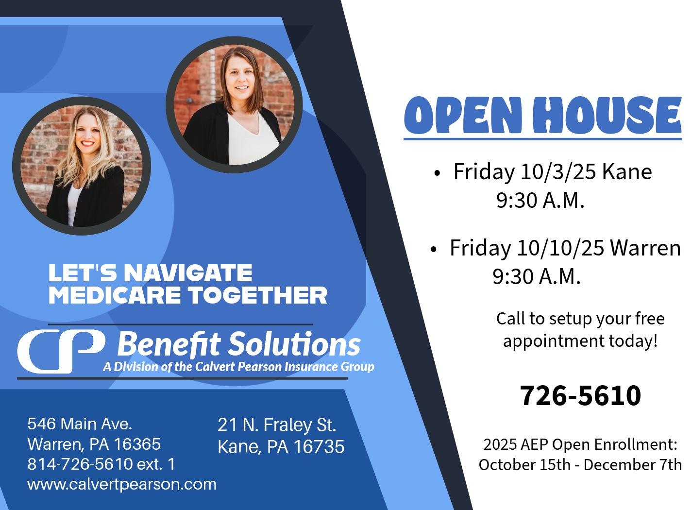 When you turn 65, there is a six month period during which you are guaranteed a Medicare Supplement or Advantage Plan with the best possible rates and options. These plans can be confusing, but Calvert Pearson is here to help you discover the best coverage option for your insurance needs.
